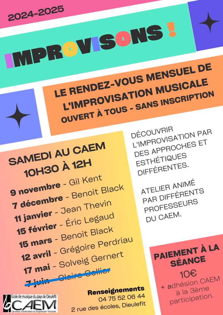 Depuis longtemps, le CAEM se singularise par sa multitude d’ateliers collectifs et par de nombreux projets qui incitent à la pratique collective, celle-ci étant considérée comme un socle essentiel de l’apprentissage. Dans notre projet d’établissement 2022-2027, les professeurs ont imaginé un nouveau dispositif pour inciter encore plus d’élèves à faire l’expérience du jeu en groupe, véritable vecteur de compétences, lieu de partage et de découvertes. Nous expérimentons cette année pour la première fois :