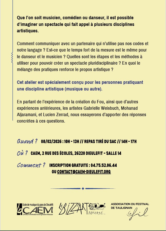 Soit : L’élève s’inscrit directement aux ateliers qui l’intéressent auprès des professeurs concernés >> coordonnées sur le programme.