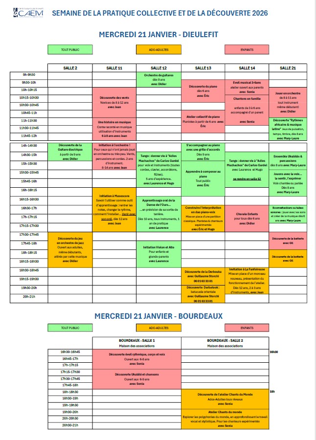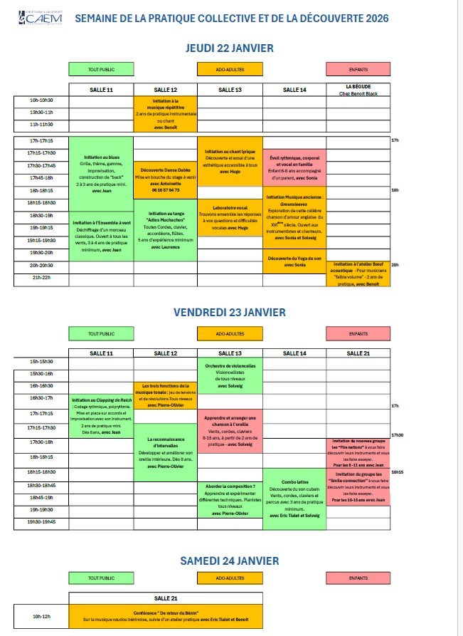 Semaine de la pratique collective au CAEM - du 15 au 19 janvier 2024